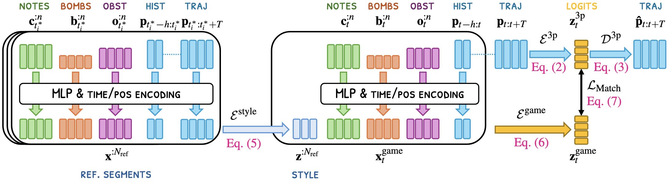 Similarly, the model can produce novice-like movements by feeding a novice player’s contextual exemplars.